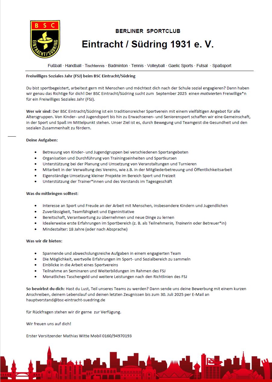 Freiwilliges Soziales Jahr bei Eintracht/Südring