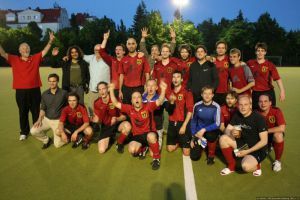 Wir Freizeitkicker sind im Durchschnitt um die 30, aber von 20 bis 40 Jahren gestreut, fast alles frühere Vereinsspieler. Woher jemand kommt, fragen wir nicht, solange er ein netter Mensch ist und Fußball spielen kann. Einen Trainer haben wir nicht, weil sich von uns keiner herumkommandieren lässt. Wir kicken zusammen, weil wir mit und gegen gute Leute einen gepflegten Ball spielen wollen, ohne die Gräten für die berühmte goldene Ananas zu riskieren. Wir gehen auf den Platz, um zu gewinnen - aber in den Freizeitligen gibt es schlussendlich nichts zu holen. Für uns geht es zu 50% auch um das neben dem Platz - die Organisation des jährlichen Benefiz-im-Kiez-Turniers, gute Feiern und 3. Halbzeiten. Wer gepflegten Fußball spielen will, um Spaß zu haben und auch außerhalb des Platzes ein gutes Team zu sein, der ist bei uns richtig.