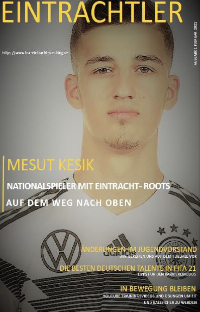 Die Februarausgabe widmet sich in Ihrer Titelstory Mesut Kesik, der bei unserer Eintracht das Kicken erlernt hat und es bis in die deutsche U19 Nationalmannschaft geschafft hat. Und Mesut hat noch Großes vor. Ebenso gibt es Infos zum neuen Jugendvorstand, Trainingstipps in Form von Online Tutorials und eine Menge weitere Tipps und viel Unterhaltung! Macht euch selbst ein Bild und lest euch mal durch!